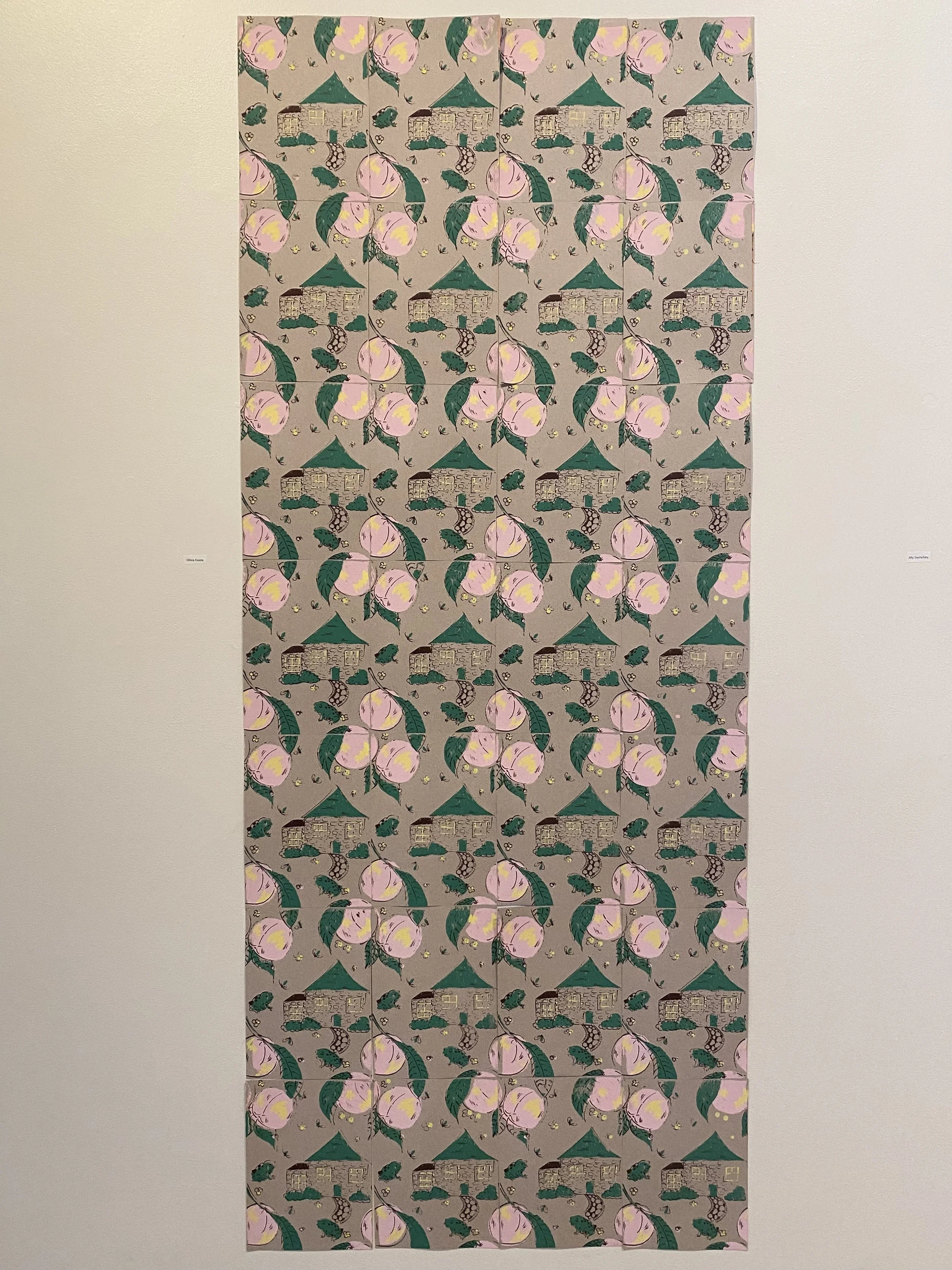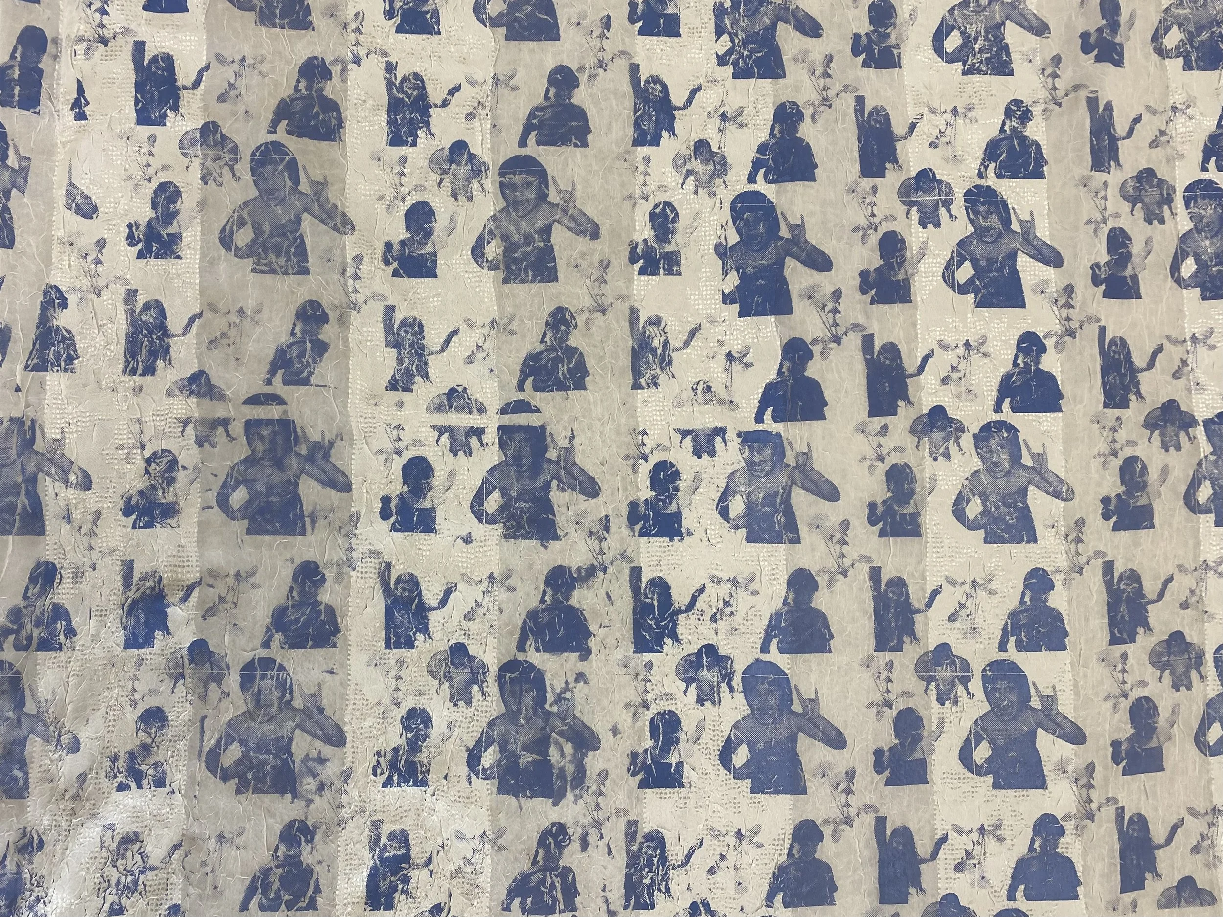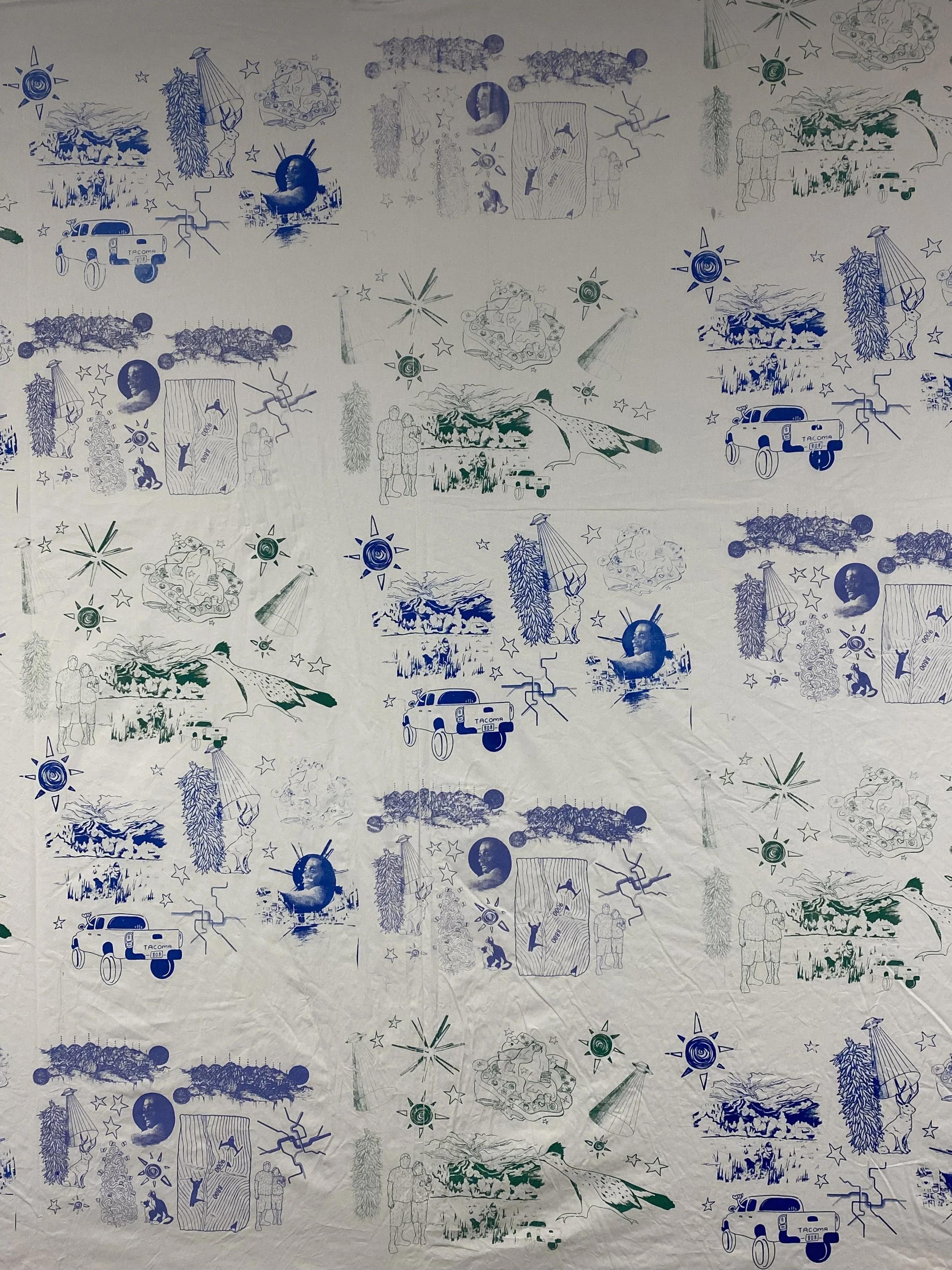 Screenprint repeating pattern of symbols or signs of where we’re from.